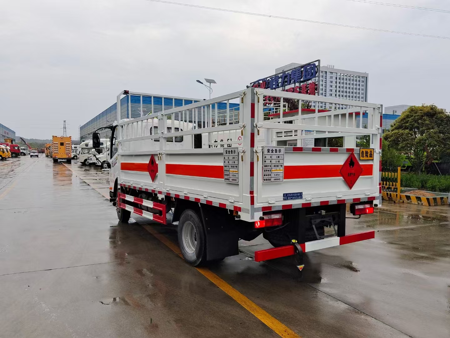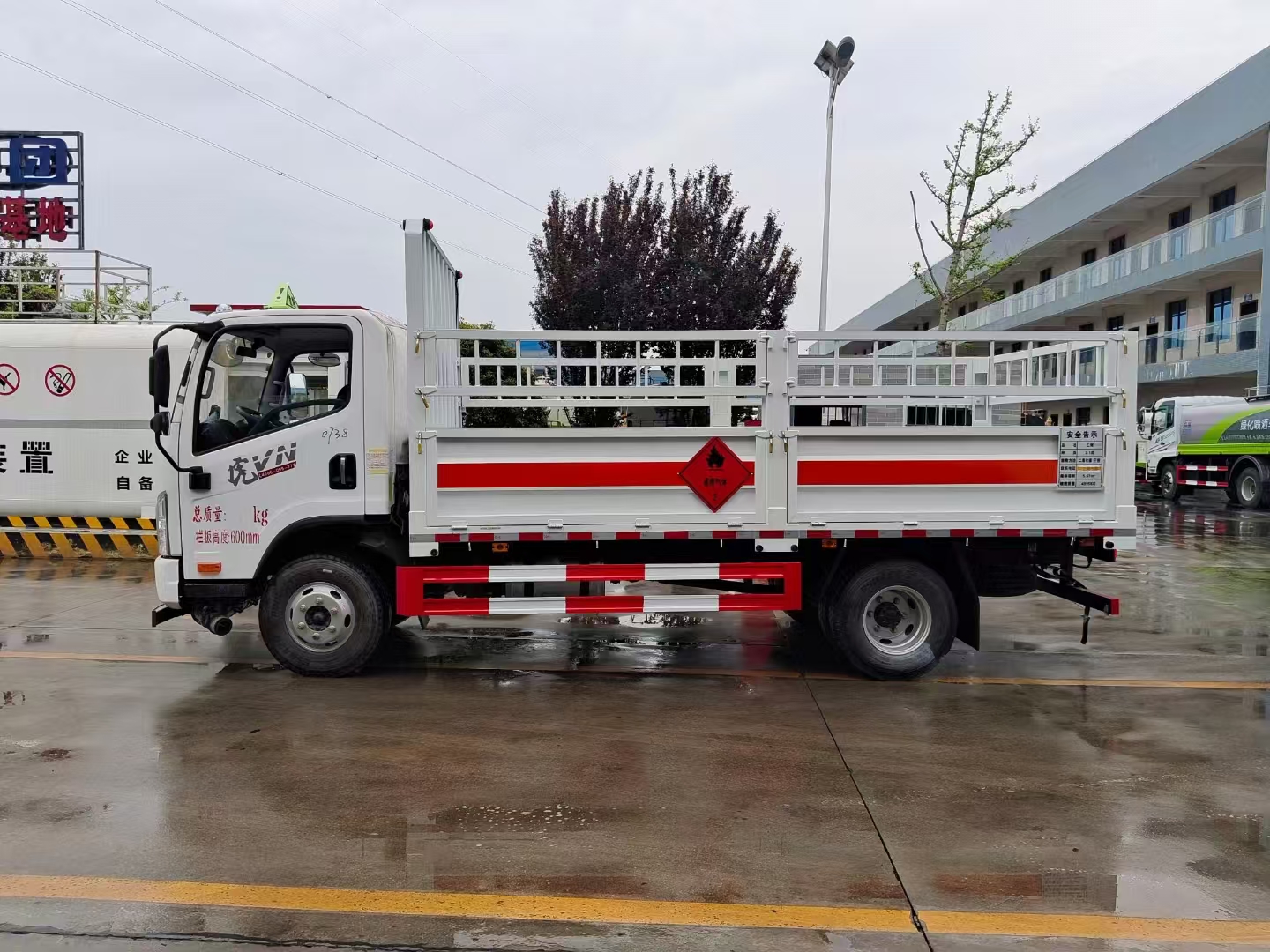 | 底盤(pán)配置 | 虎VN平頂單排駕駛室,錫柴CA4DB1A14E68,6GS42,270沖焊橋(速比4.875、輪距1640),速比4.875,7.50R1616層級(jí)真空胎,帶國(guó)產(chǎn)ABS,前盤(pán)后楔制動(dòng)器,空調(diào)+電動(dòng)門(mén)窗+中控鎖,氣喇叭,高架箱,80L鋁合金油箱,板簧3/7+3,前輪帶爆胎應(yīng)急裝置,前碰撞預(yù)警+車(chē)道偏離輔助預(yù)警,前下防護(hù),防飛濺擋泥板,排氣火花熄滅器,限速79km/h,北斗+GPRS行車(chē)記錄儀(帶視頻記錄功能),帶靜電拖地帶,NFH,危險(xiǎn)品專(zhuān)用底盤(pán) | ||