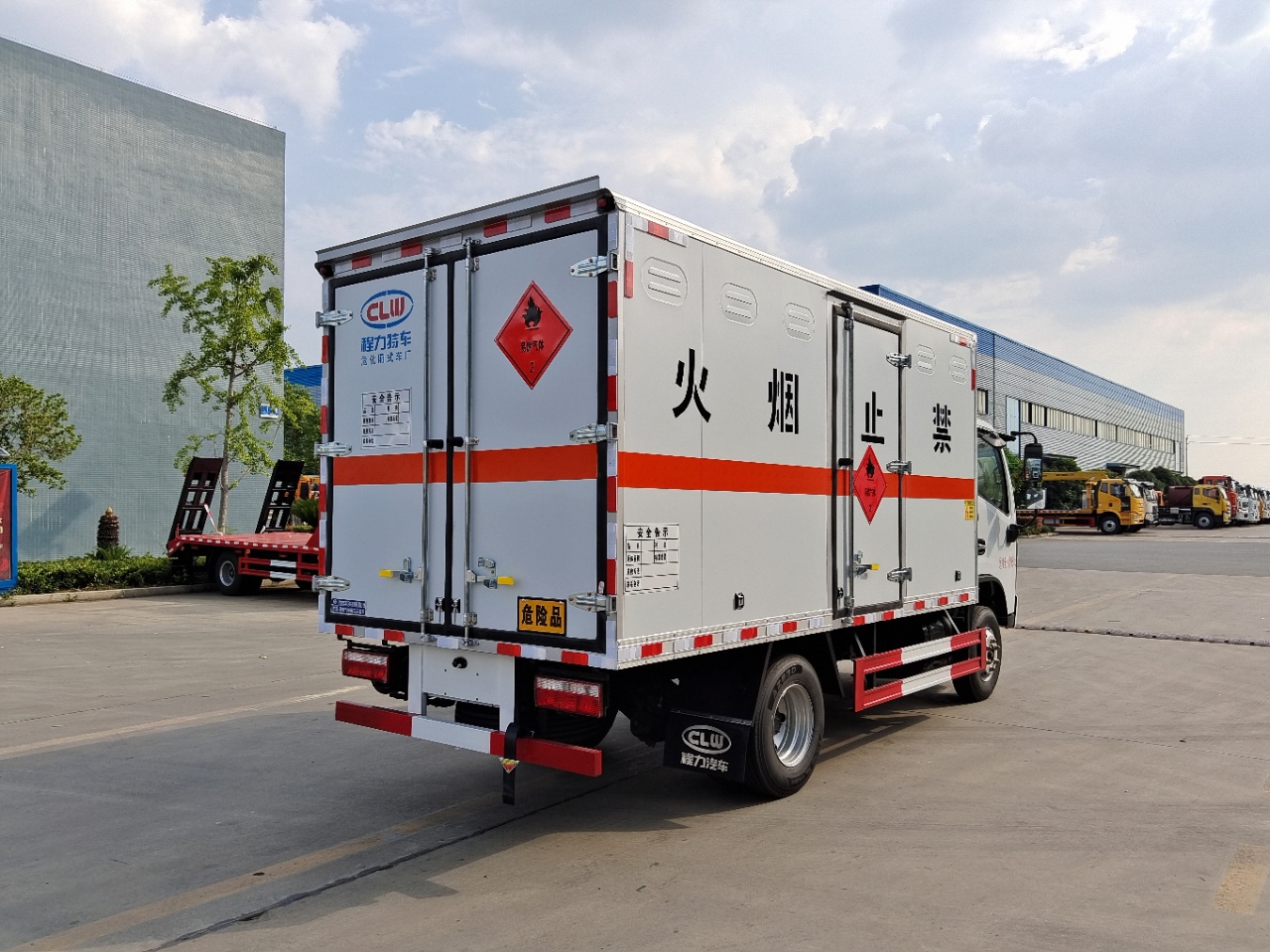 | 型號 | CLW5040XQYE6型爆破器材運輸車 CLW5040XRQE6型易燃氣體廂式運輸車 CLW5040XRYE6型易燃液體廂式運輸車 CLW5040XYW6型氧化性物品廂式運輸車CLW5040XFWE6型腐蝕性物品廂式運輸車 整車外廓尺寸(長×寬×高)(mm):5995×2130×2950 貨廂內尺寸(長×寬×高)(mm):4100×2000×1850 總質量:4495kg 整備質量:3400kg 額載:965kg | ||