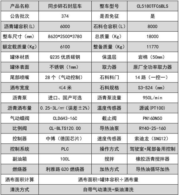 ??????湖北程力汽車:程力CL5180TFC6BLS型陜汽德龍單橋瀝青碎石同步封層車產(chǎn)品型號及參數(shù)配置,程力CL5180TFC6BLS型陜汽德龍單橋瀝青碎石同步封層車高清圖片,程力汽車系列程力CL5180TFC6BLS型陜汽德龍單橋瀝青碎石同步封層車最新報價請撥打客服熱線。車輛主要配置 產(chǎn)品商標 程力牌 公告批次 389(擴展) 產(chǎn)品名稱 同步碎石封層車 產(chǎn)品型號 CL5180TFC6BLS 總質量(Kg) 18000 罐體容積(m3) 額定載質量(Kg) 6100,6035 外形尺寸(mm) 8620 × 2500 × 3780 整備質量...