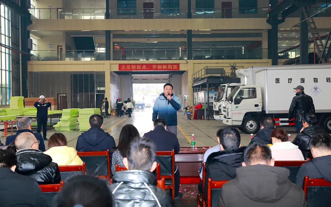 3月2日,程力特種冷鏈車專業(yè)廠花費數(shù)百萬元引進的自動化廂式車板材切割復合生產線正式剪彩投入使用,集團公司總經理程阿羅出席剪彩儀式,并發(fā)表講話。