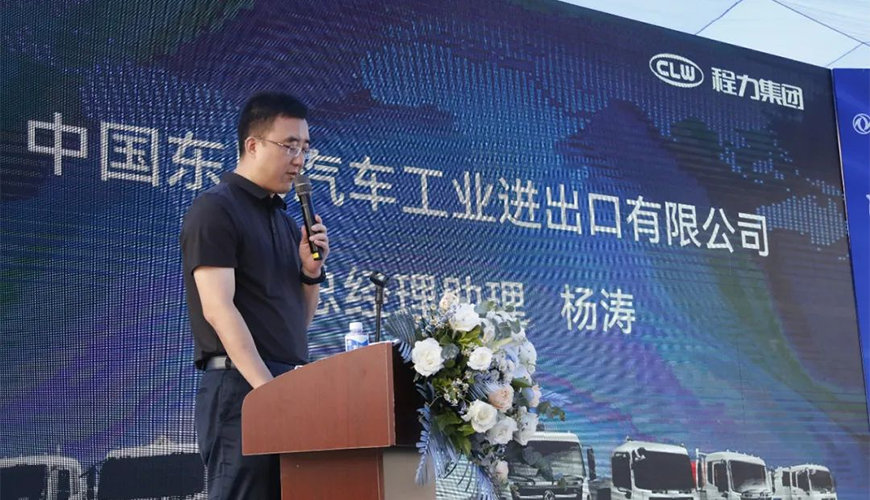 中國(guó)東風(fēng)汽車(chē)工業(yè)進(jìn)出口有限公司總經(jīng)理助理?xiàng)顫诨顒?dòng)中,做了重要講話(huà)。他強(qiáng)調(diào),首先要感謝程力集團(tuán)一直以來(lái),與東風(fēng)公司全面戰(zhàn)略合作和大力支持,并向參加推薦會(huì)的來(lái)賓與銷(xiāo)售經(jīng)理表示誠(chéng)摯的問(wèn)候。