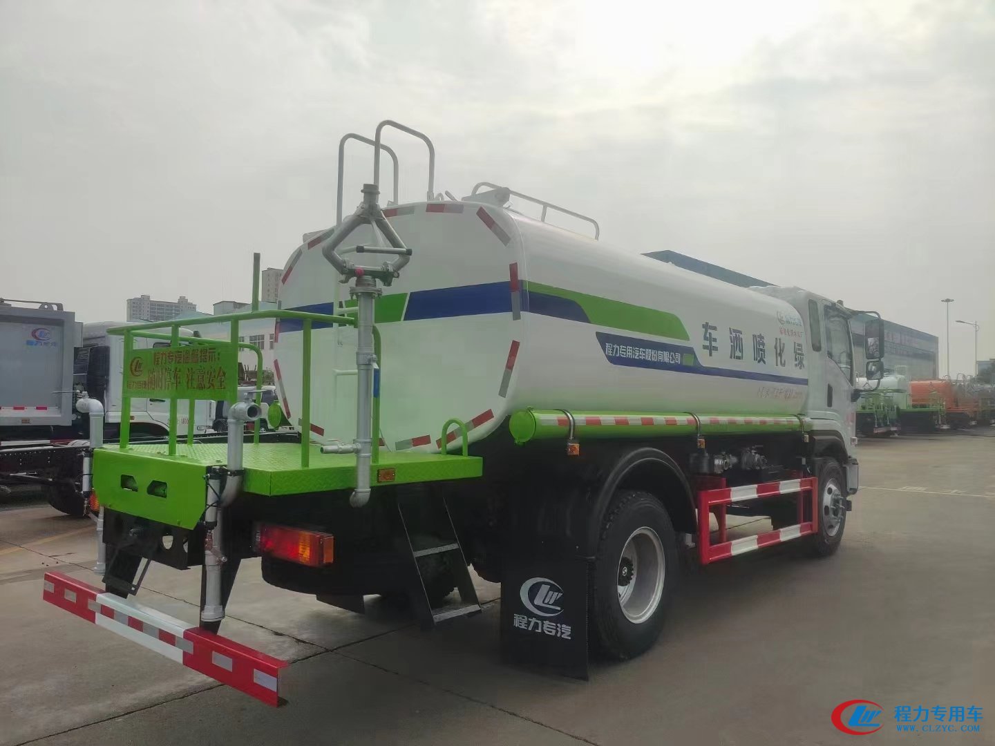 | 上裝配置 | 上裝武鋼優(yōu)質(zhì)碳鋼板,容積12立方,厚度4mm,封頭5mm,前后封頭機器人自動焊,內(nèi)設隔浪板,帶液位計, 配程力原廠大功率灑水泵,帶駕駛室電控操作,前沖后灑4個新式不銹鋼切斷閥,前沖 后灑 側噴 后高炮,后高炮可調(diào)節(jié)柱狀 雨狀和霧狀,新式?jīng)_孔工作平臺,主管道加粗,副管道全采用優(yōu)質(zhì)鍍鋅管道,帶自吸自排,自流閥,消防接頭,過濾裝置,邊燈帶電,其他標配… | ||